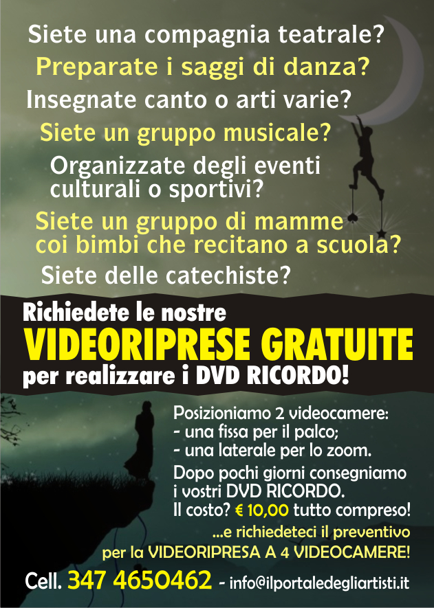 danza - concerti - teatro - balletti - saggi - recite - comunioni - cresime - compleanni concorsi - musica - videocorsi - presentazioni - spot